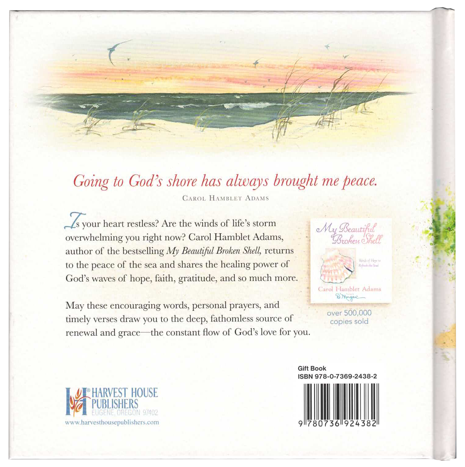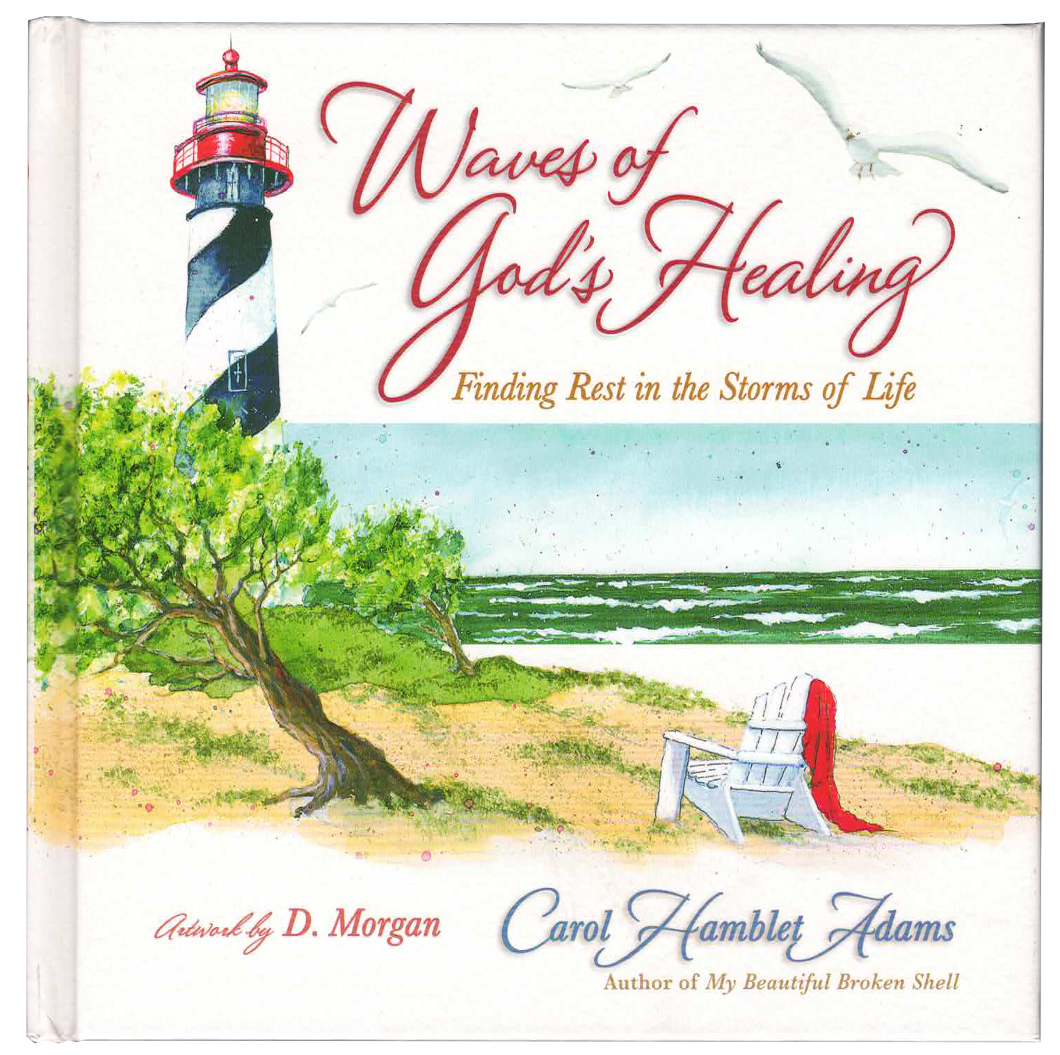 This book includes D Morgan’s beautiful seashore and seaside artwork with Carol Hamblet Adams inspirational writings of different virtues in waves.